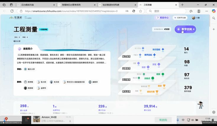 为深入贯彻国家“人工智能+教育”战略部署,深化工程测量领域教学改革,由喀什大学主办、智慧树网协办,佳木斯大学、北部湾大学、南方测绘、机械工业出版社共同参与的“《工程测量》数智课程运行暨虚拟教研室建设研讨会”于2025年3月28日在喀什大学智慧树网课栈成功召开。会议通过线上+线下双驱模式开展,聚焦数智化课程体系构建与虚拟教研室协同创新,以数字化技术赋能教育生态重构,探索教学效率提升、资源均衡共享与新时代人才培养的创新路径。
